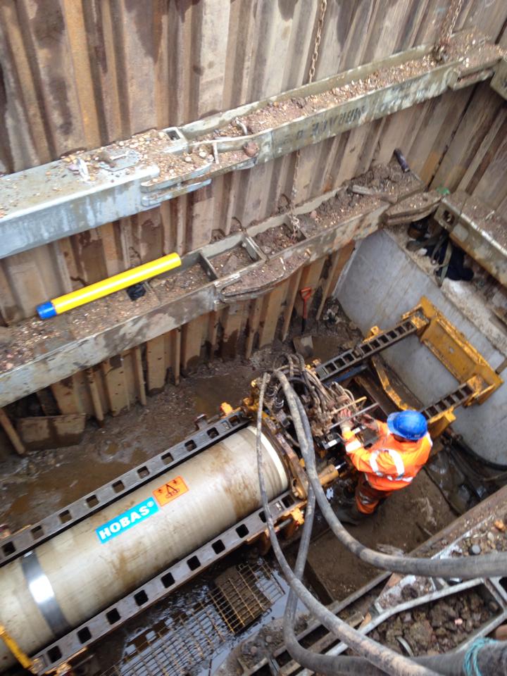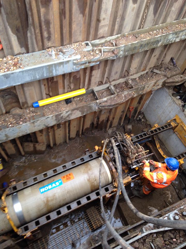 Hobas DN600 jacking pipes installed to line and grade in Nottingham.